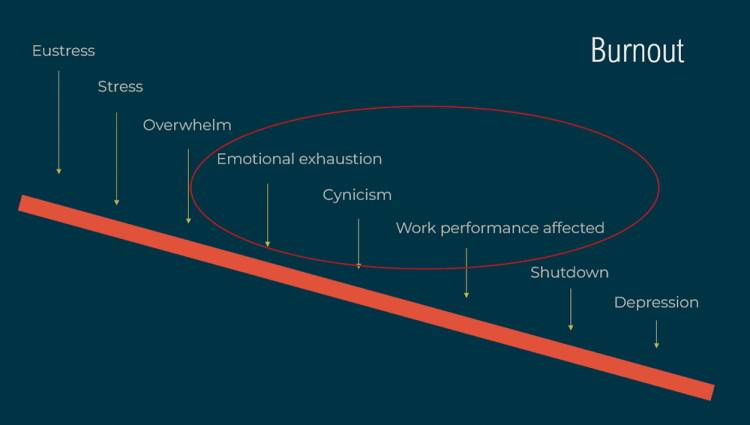 Being tired is not burnout. Feeling really stressed is not burnout. Feeling exhausted is not burnout. There are 3 specific measures that indicate the existence of burnout: