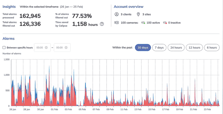 All these onsite sensors, alarms, cameras and video analytics create a vast number of alarms, which make it exceptionally difficult to manage. A cloud-based artificial intelligence platform was deployed to filter out all the false alarms and only human and vehicle classifications are escalated to the controllers.