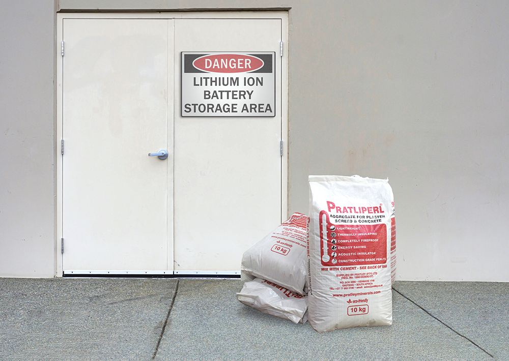 The importance of fireproofing modern battery rooms is a key component in fire safety. Pratliperl is a non-combustible, ultra-lightweight aggregate that can be mixed with cement and applied as a plaster or screed to walls, floors, and ceilings. When applied at just 30 mm thickness, Pratliperl delivers a two-hour fire rating, as certified by the South African Bureau of Standards (SABS).